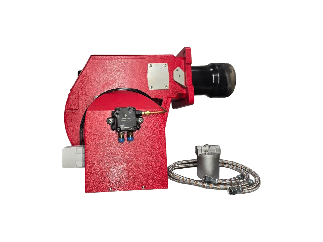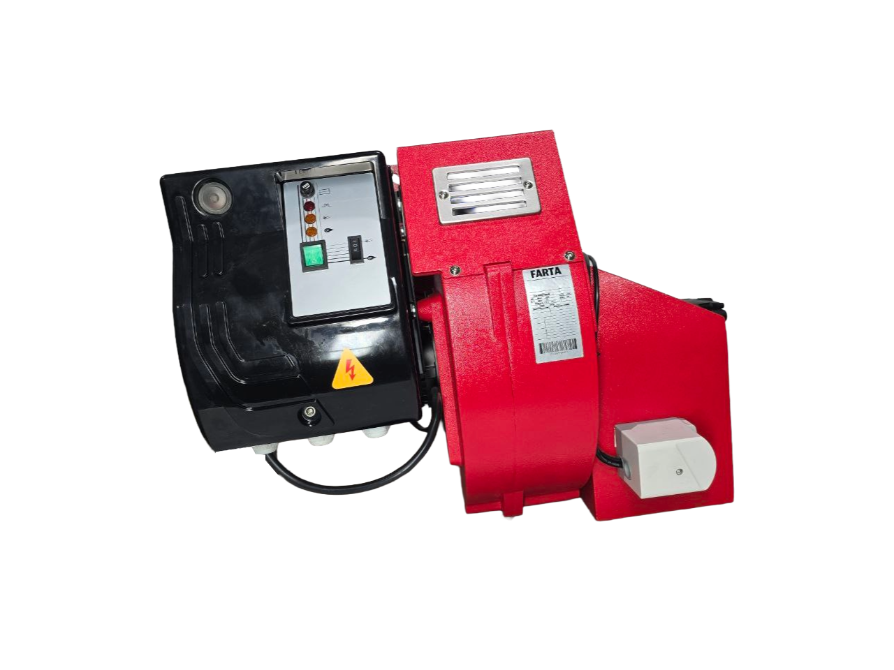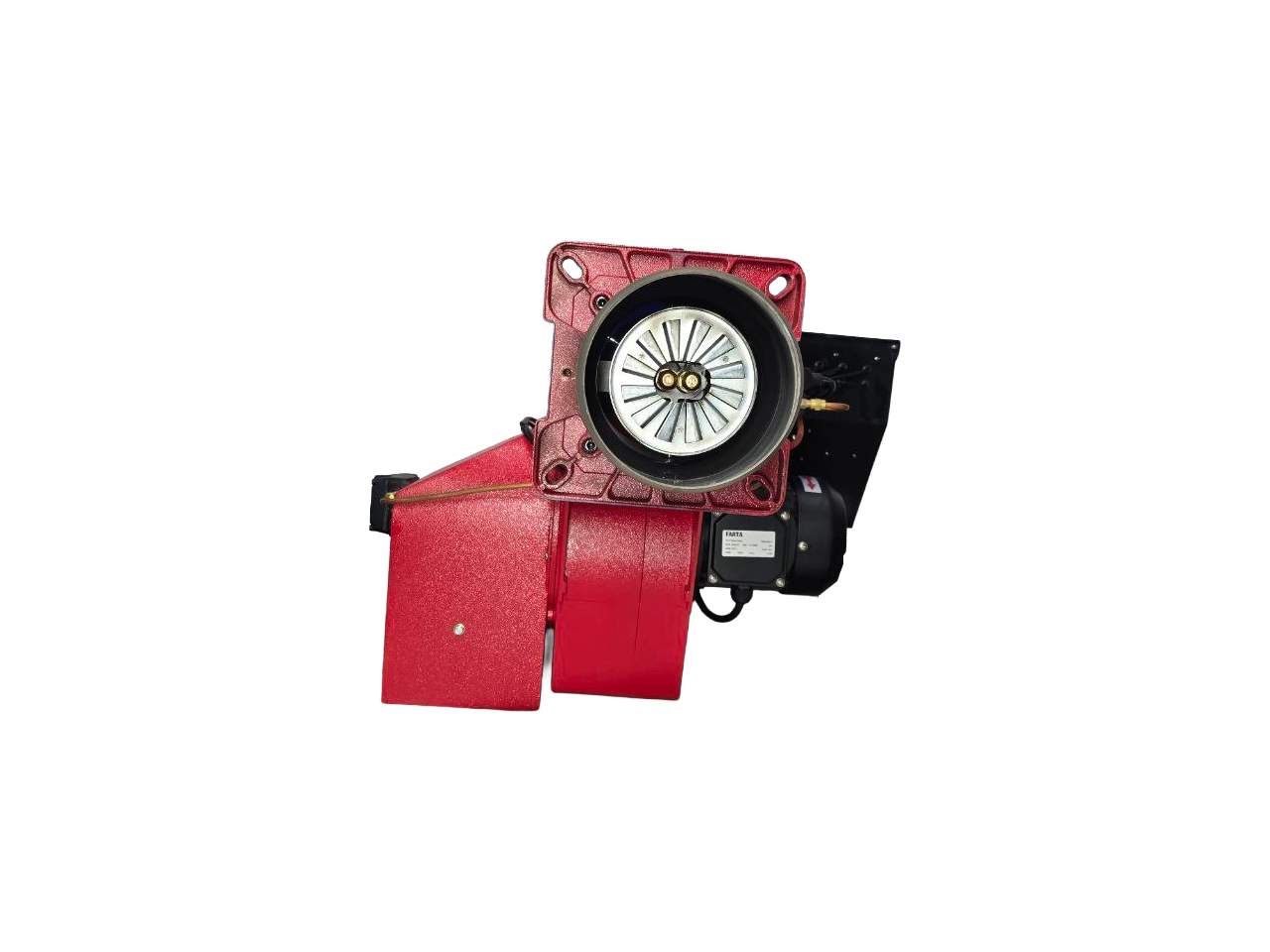 Горелка блочная, состоит из литого алюминиевого корпуса, на котором установлены: вентилятор с двигателем, трансформатор поджога, блок управления, воздушная заслонка.